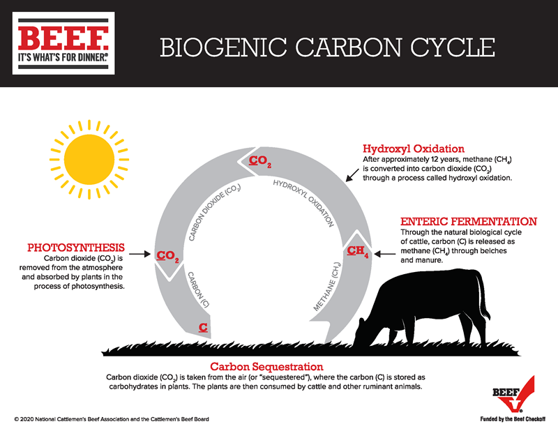 Contrary to some of the misconceptions about beef’s role in greenhouse gas emissions, cattle-generated gases are completely natural, are very different from the types of gasses stemming from fossil fuel emissions, and are on the decline. Click here to learn more about beef’s role in greenhouse gas emissions.